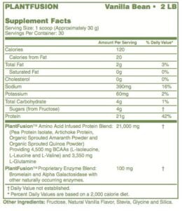 PlantFusion Protein Blend Nutritional Information: Vanilla Bean